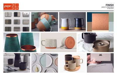 We narrowed in on this minimal design composed of a scented ceramic material, sheet metal clip and soft cork gripping surface. The materials felt substantial, not cheap like other products on the shelf, and it was fairly straightforward to manufacture and disassemble. Here are just a few of the material finishes explored.